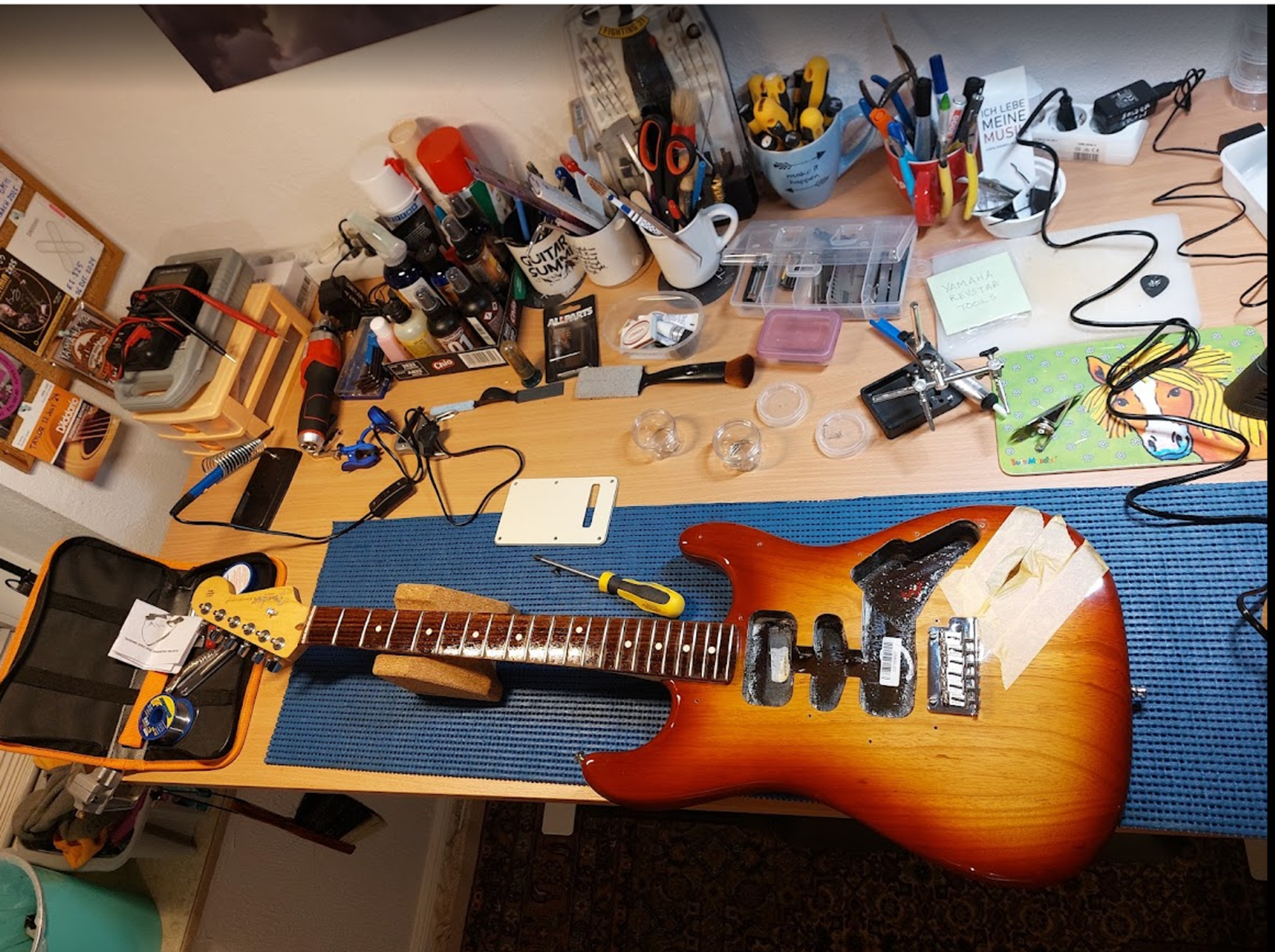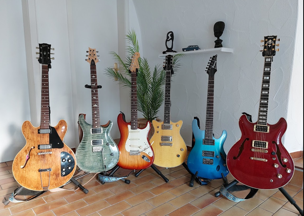 I’ve been playing in bands on and off since I was 16 years old. Starting out, I played bass guitar in my teens and early twenties, including covers, originals, and some recording work. After moving to Germany, I played 12-string in an acoustic duo for about eight years, and over the last few years I’ve been playing electric guitar with friends and in a local cover band. In 2017 I started studying rock lead guitar. Around that same time, I also started collecting guitars (GAS!) and learning how to service, repair and set up guitars.